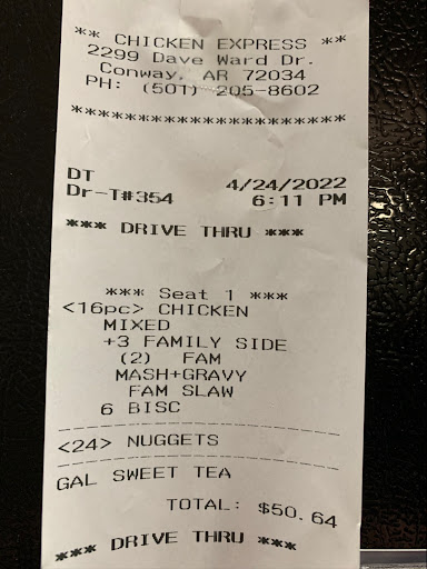 Chicken Express is Awesome everything is freshly Cooked, fish & chicken sides are the BEST IN THIS TOWN, & ARKANSAS Great staff friendly courteous just great all the way around