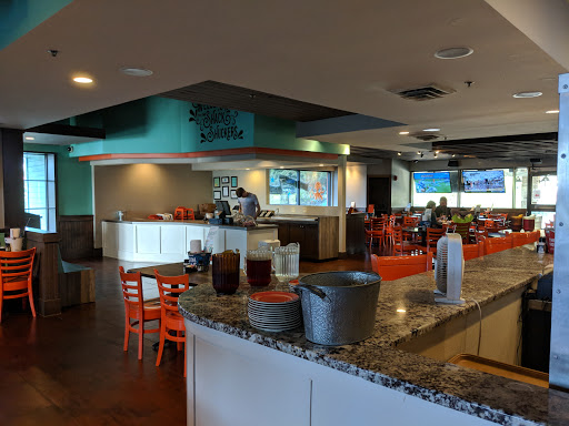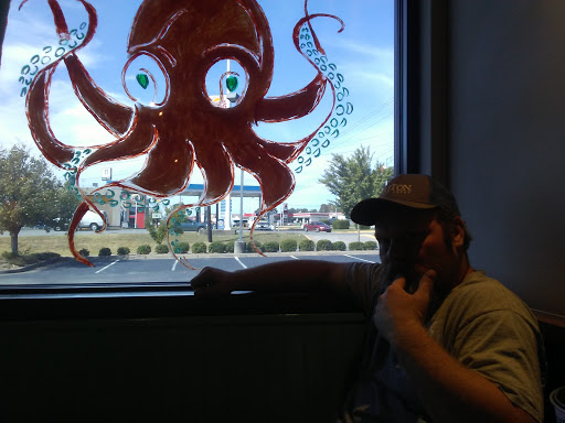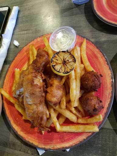 Air condition is insufficient. Sure we are not on the coast but I thought the fish/crab might taste ok..I mean you wouldnt serve something that is inedible right? Wrong apparently. Stay away from the crab stuffed flounder. The grouper was ordered blackened and was barely grilled with little seasoning. If you order a baked potato, order the toppings on the side. Mine needed a life jacket to survive what I can only assume to be a plate full of melted butter. The shuck salad was good, the only thing I did enjoy. Fresh mixed greens. His coleslaw was pretty good. The onion rings to me tasted ok, to him, he said they tasted like they were cooked in old grease. I think it was just the flavor of the onion rings. The brand of root beer was undrinkable. I love root beer but this bottle had us looking for an expiration date. Our waiter was attentive and pleasant. The trivia and music was loud and obnoxious. At one point the song chandelier came on and apparently someone loves this song as it was turned up so loud we could no longer hold a conversation. We will not return.
