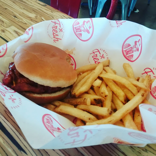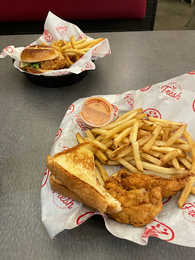 Definitely the most tender strips in town. As a first time visitor the staff could have been a little more knowledgeable and helpful with choices but the quality of the chicken and dipping sauces made up for this slight of courtesy. The soda fountains run rich, so to the untrained tongue they may give a slightly off taste, but you should just say "thanks" for the extra syrup. The fries were a little soggy and did not taste fresh cut, but again didnt we come here for the premium chicken? Avoid the "Slim Sauce" unless your a fan of sweet/creamy and go for the cayenne ranch if you like any level of heat. Enjoy!