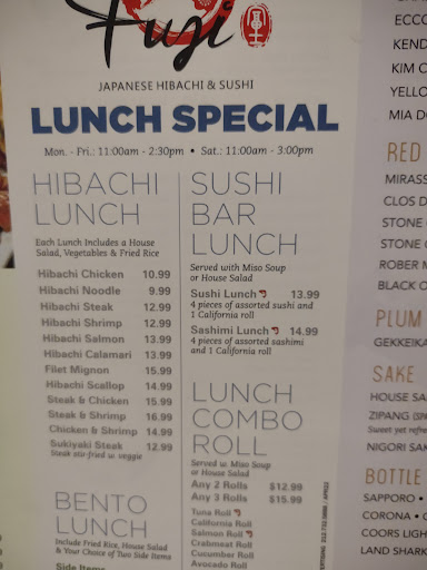 I had gone to Fujis many times and the food had always been great. Tonight me and my wife went out to eat at Fujis and it was the worst experience I have ever had at a Hibachi Grill. I ordered the filet mignon, chicken and Shrimp. My wife ordered the Filet mignon and Shrimp. I always watch close when they bring out the food because a lot of people order steak. This night most people ordered steak, one guy ordered like a steak stir-fry or something. When the cook put the food down he put the Stir-fry to one side, then flopped Filet Mignon and Sirloin Steak all in the same pile, Cut them all up into small pieces and mixed them together, he acted as if he was in a hurry. When the food was all cooked, he mixed the group a few times and then handed some to everyone on the table, Of course me and my wife were the last to get server. I got 100% Sirloin steak and my wife got a mix of Sirloin and Filet Mignon. My wife even tasted it and she noticed right away it was Sirloin and not Mignon. So I waited and quietly told the waitress that I did not get the food I ordered. She said oh, and walked over to the cook that was now at another table, then came back and said no he gave you the Mignon. I told her look at what is on my plate, and look at the few pieces of Mignon my wife got. She said oh ok and walked off and went and got the cook. He came over and told me to my face that it was mignon, My wife even looked at him and said no it isn’t, this is Mignon, and he looked at them both then proceeded to tell me I didn’t know what I was talking about. Then I proceeded to tell him I come in to Fuji’s about every other month or so and order the same thing, I know what the hell Filet Mignon looks and tastes like at Fuji’s. To my surprise the Cook acted like a 2 year old and tossed his hands up and walked off. The waitress was nice and went to the manager, guess what he gave us 1$ off our meal. IT’S FREAKING 6+ BUCKS MORE PER PLATE FOR FILET MIGNON!!!!!! This was on 11/25/2013 around 6pm CST. And me and my wife said we will NEVER eat at Fuji’s again, and I suggest that if you want good Hibachi food, please check the other places in town.