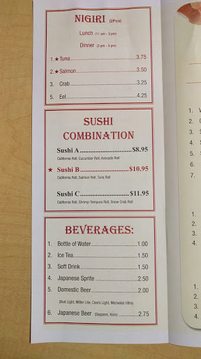 I almost dont know where to start on how bad this lil place is, so Ill just begin from when you walk in. 1. You stand at the counter, with anyone unfortunate enough to walk in behind you waiting, while you look at a menu plastered on the wall and decide what you want for your meal and inform the register clerk. 2. You then pay for your food, INCLUDING the tip (word of warning here, youll see why in a minute, but DO NOT put a tip on that receipt yet). 3. You are given a plastic tray with styrofoam cups and are told to pick up your own plastic forks and spoons from a completely unsanitary pile that every other customer is reaching into. 4. The food isnt brought to your table all at once if you are eating with friends or family, it will be brought to you in a styrofoam to-go container one person at a time. Because nothing says welcome and enjoy your meal, like having it given to you ready to walk out the door... 5. We ordered the "A" selection for sushi, and it was NOT any rolls like youll get at another sushi serving establishment. I absolutely would swear the California Roll was stuffed with coleslaw for some awful reason, if not it was just horrible for the sake of being bad. The roll that had avacodo was warm, that was kinda icky since it just turned to mush when you tried to chopstick it. And I cant even tell you what the third was, it was like white rice stuff with slivers of cucumber and thats it. Total waste of $9.00! 6. We ordered the steak hibachi with fried rice, and I am absolutely telling you, in 40+ years on this planet I have been eating steak and meat all my life, in a vast variety of cuts, cooks and locations... this was the worst tasting and poorest cut of meat Ive ever tried to ingest. We spat out almost 2/3 of the steak we tried to chew into our napkins. It was like trying to chew up a rubber super ball covered in some kind of water saturated with burnt meat chips. 7. The fried rice was so bland we had to squirt something they call "yum yum" sauce all over it for flavor, and I wouldnt have gone that far if we werent hungry and had the kids with us and just didnt want to hassle with loading everyone back up. 8. I had the shrimp with mine also, and it was overcooked so badly that it was literally burnt and chewy. How you cook shrimp that bad is just beyond me. 9. They gave us something they call a salad, in a styrofoam to-go box of course, which consisted of a wad of lettuce with three very thin slices of cucumber and about three cups of water poured over it with half a teaspoon of some kind of dressing that tasted like pickle relish with peanut butter. 10. This stuff they called "yum yum" sauce tastes like the sauce on a big mac, it in itself is a horrible concoction that they give you in a gigantic ketchup squirt bottle to mask the flavors of the poorly cooked food. 11. The reason you DO NOT TIP here is because you will not have a waiter or waitress assisting you with your meal. You get up and walk across the restaurant to refill your own styrofoam cup of soda, tea, or whatever beverage you selected. You are expected to clean up your own table and drop the trash in a receptacle beside the doorway out. All in all for two adults and one child (and a two year old that eats next to nothing) we wasted $57.00 and change on this place. And the cherry on top is their website seldom works so theres not even a way to give them feedback so they can replace that cook(s) that prepared the horrible meal we were presented with. And use caution when going to the restroom there, for some reason there was plastic over the facilities in there, Im not sure if that was for sanitary reasons or broken plumbing. Either way, sanitation doesnt seem high on the list of priorities for this establishment given we are grabbing into a "community germ pit" for the plasticware. If you want better food, literally just go across the street, for a few dollars more you will get ten times the quality and taste. Even if not across the street, spend the few cents in gas, drive somewhere... ANY where else.