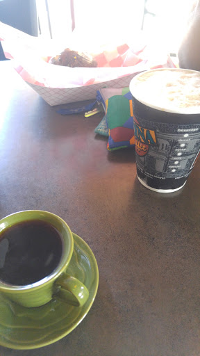 I have frequented this coffee shop for a long time and love their newest location, very comfy-cozy, like the coffee shop from Friends, good gathering spot with Wi-Fi, and when the weather is nice open air to the street front. Luv it! Never disappointed! They have many flavored coffees - MY favorite is Bananas Foster - and then additional flavored syrups for all sorts of various drinks...yayyy!! They have great food for anytime, with or without coffee, and then there are the decadent muffins, cookies and CheeseCakes!!! Especially the Key-Lime Cheesecake, it is a sight and taste to behold. I always have to take a piece home, with a bag or two of coffee beans....mmmm!