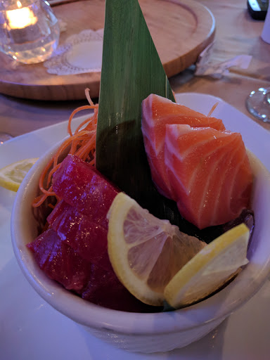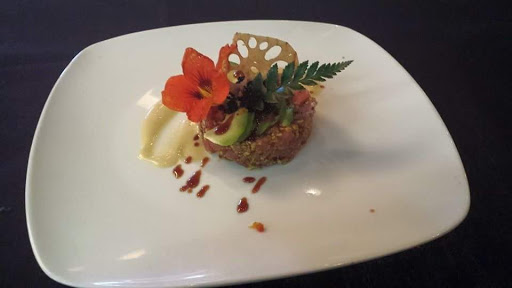 Had the halibut tail, which was beautifully plated and had a light smoky taste which went well with the fattiness of the fish. My accomplices got the alligator roll, lobster roll, and we ordered the kiss me roll as an appetizer. We also got the mango tart, cappuccino (I forget the rest of the name, it had delicious creme brulee base), and fried ice cream flambe (which was very entertaining as the person who ordered it couldnt put the fire out). Everything was absolutely amazing and the atmosphere of the restaurant was really unique. Cant wait to go again and see what new delectable specials the chef has up their sleeve.