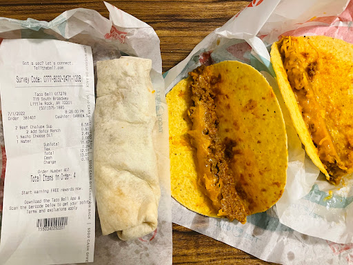 Bought lunch today at the Taco Bell off Broadway, for a co worker and my self took me about five minutes to get back to the office. We both ate one hard taco each that was so soaked with grease it fell apart we opend the rest of the grease soaked wrappers on the food and couldnt eat it. I called the person in charge to try and get our money back, they told me tacos will get soggy if you let them set out to long, I explained it was ten minutes at the most from the time I ordered till we ate, they refused to refund our money. I like TB and have had some good tacos from other locations. My suggestion is to check your order when you get it, and if it looks like this mess get a refund and go somewhere else, now I need to go find some antacids to take