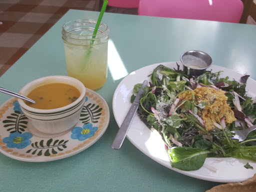 Stopped here while travelling from Ohio to Dallas. Was recommended by my Airbnb host Katie. Had the veggie omelette which came with a side of spring greens salad. It was very good and I especially liked the dressing on salad. Coffee and omelette very good too. Spotted a fig tree with lots of ripe figs on far end of parking lot. It is a small place with nice watercolor drawings decorating the walls, old time table and chairs, chandeliers. Love that the food is from local farms.