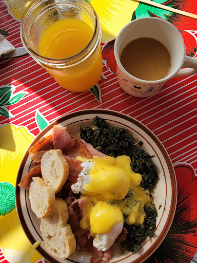 Came for breakfast and the food is good, but served different from the "normal" versions of the same fare. Husband got the breakfast Bhan mi with sausage, and it wasnt a sandwich... That one definitely would have been better in sandwich version, especially if the fried egg had been warm. Eggs Benedict was not on a biscuit or muffin, but served with small pieces of bread. Still tasted good! I do love that they serve local and organic where they can, and would think that lunch is even better than breakfast