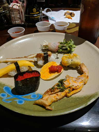 My family and I went there last night. The presentation of the buffet was superb. I think this was one of the cleanest buffet lines I had ever seen in my life. They had a cold sushi bar, as well as a hot bar. I personally dont eat sushi, so this review is mainly based on the hot bar, and the service of the staff, as well as how clean the place is. I called before I entered the establishment to get a feel of what they had at the hot bar. I wanted to see if they had stuff my kids could eat as well. I asked the receptionist what they had available, and I dont think she understood me at all. I asked what was on the menu, and she said "we have a menu." So I just hung up, and I said we shall take a chance. You walk in, and there a separate area for the sushi bar, and a separate area for the hot bar. I loved the dish ware.. I think they were very clean and pretty to look at. The dishes they had were teriyaki chicken, teriyaki steak, teriyaki salmon, roasted duck, and a variety of others. They had braised pork ribs I believe, and another beef dish. They also had an udon noodle dish, as well as fried rice and the ever present steamed rice. I personally tried the chicken, udon noodles, steamed rice, and roasted duck. The chicken wasnt terrible. It had the sauce dribbled on top of it.. and it was well cooked. I would go back for the chicken. The udon noodles were chewy. I dont know about you, but udon noodles should not be chewy. Theyre noodles. The roasted duck.. I come from Northern Virginia. and everyone knows that the best duck to get in Northern VA, is from Peking Gourmet Inn. So I had that in mind when I tasted this duck, and it fell short because it wasnt cooked in the same manner. This roasted duck had the bone and skin still attached. The duck was hit and miss. The first piece I had wasnt bad, but the second piece I had was dry. I wouldnt go back for the noodles or the duck. The steamed rice also left something to be desired as well. They should have added a little bit more water to the pot when it was cooking. Either that or after it was finished cooking, add water so that the rice will soak it up just a bit more. The service was superb though. She didnt speak English that well, but she helped my disabled son out, and always got us refills. She was extremely nice. I would go back for the service from her. Overall, this place was okay. Not that kid friendly because 2 of my kids didnt eat off the buffet. The buffet was pricey, at $16 a pop.. but.. for what I ate and what I normally order from a Japanese steakhouse, then it wouldnt be too bad. This restaurant is mainly an adult themed restaurant. I wouldnt take my kids there a second time around.