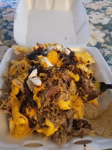 Great food, the pulled rib meat is my favorite. Their baked potatoes are the best, you could eat them plain and love them. Very few places know how to properly bake a large, fluffy potato, but they do and then they pile it with great smoked meat.
