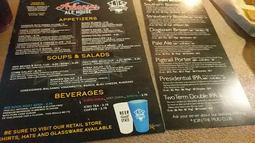 Great Brewery and Taproom. Im here almost every week playing trivia drinking excellent local beer and eating great food. If you go to a brewery in central Arkansas this should be your first stop. I believe they have been at it the longest and have represented the state well. The taproom is full of big screen tvs, a good size bar. and plenty of seating. They have a solid menu and offer one of the best club sandwiches Ive had. And they make an unbelievably tasting bread pudding dessert everyday that will leave you wanting more.