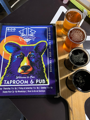 I try to support my local brewers as much as possible, and am glad to recommend Diamond Bear as quality local fare! The Saturday tour is quite enjoyable, free samples and a full walkthrough of the brewery and its processes. Bring in 10 of their 6-pack or 12-pack carriers and trays to recycle and theyll give you a pint glass. Fresh beer on tap for purchase - even on Sundays (as local breweries are the only places allowed to sell take-away alcohol on Sundays)