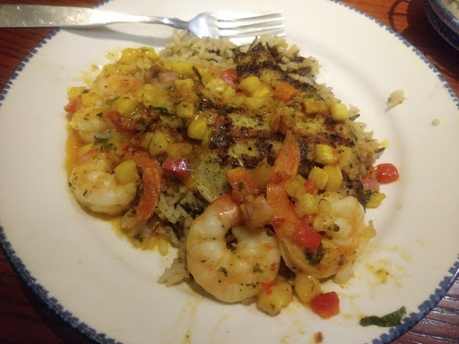 Over all it was descent food and the service was okay. The coconut butterfly shrimp were very good. But the stuffed crab, lobster, shrimp mushroom dish was very FISHY tasting. Not very good. New England Clam chowder was tasty but Luke warm. We had two bar drinks, Mudd Slide and Mango strawberry with raspberry swirl, was very tasty, but there drinks were weak as far as the alcohol contents.