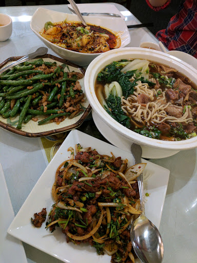 Hand pulled noodles and delicious Chinese food. Very good for the price. I highly recommend their specialty "egg tofu". Their cumin beef or lamb is amazing too. This is a must try if you are craving for soup or noodles and in town. Street parking might be hard to find but you can park in the movie theatre garage behind it. Cheap and free after 6pm.