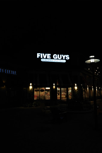 Five guys, youre just alright Now dont get me wrong, dont wanna fight Your fries are great, they. Give you a lot But the flavor of your burgers... Great it is not You guys are good and greasy I like that youre cheesy So you can add on a LOT of cool extras to your burger, they taste alright, and their fries (they gooooood and they give you a looooooooooot) so thats a plus. But the burgers make you feel a little bloated and isnt a "clean" taste meaning that it feels like everything is mixed up and there isnt distinct flavors. Anyways, this place is ok nothing too bad and Id come here if I was in the areas. The outside eating areas are cool.