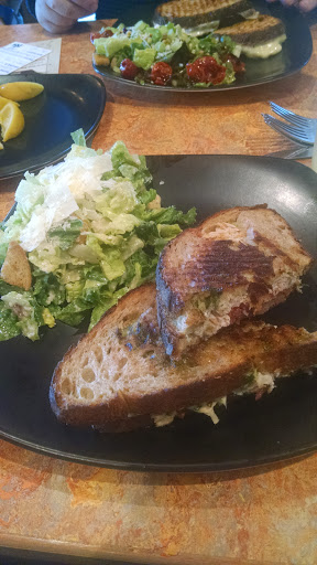 Clean with dog-friendly patio, friendly staff, beers on tap, and sandwiches and pizzas, and a great quality-to-cost value. Whats not to love? Staff recommended the three-cheese panini, which is a great pick and excellent with their whole-grain mustard on the side. Upgraded from chips to a side Caesar for $1: not disappointed. Salad is tasty if a little oily. All told, meal cost $12, including a fountain soda. Salad is not small, so two people could easily split a salad and sandwich for lunch.