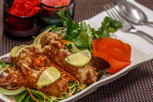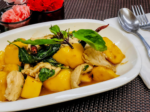 I need to come to Alameda more often. There seems to be a lot to really good places to grab a bite to eat here, and its a shame Im not in this area all that often. This Thai spot in Alameda is no exception. Definitely some of the better Thai food that Ive had. The restaurant itself, visually, is clean and appealing. The environs, though not attempting to be anything overly stylish, are refreshing. Tables, seats, and decorations are simple. Things have a visually balanced feel to them. A very comfortable spot. A friendly waitress had us seated quickly, menus, place settings, and all. We ordered the grilled chicken, grilled beef, crispy chicken salad, pineapple shrimp curry, and fried calamari as at appetizer. A few moments after our order was taken, plates and house salad were brought out. A tasty simple salad to get things started, but awesome that this started things off. A few minutes more and our food came out. The salad was flavorful, the grilled chicken and beef were tender as well as juicy, and even the fried calamari was on point. I couldnt stop eating that calamari, in fact. The food here is definitely on the top notch side. Great food, fast friendly service, and a really nice restaurant all in all. Im a fan for sure. Again, I really need to start hitting up Alameda more