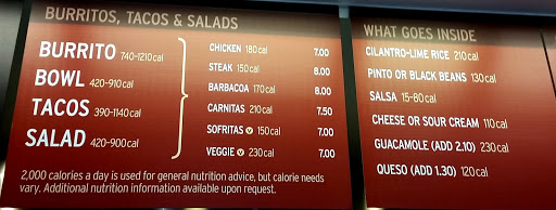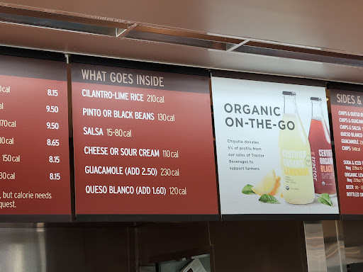 Quality wise the food is exactly what you expect, chipotle brand good Mexican-American style made to order line burritos and tacos. My only issue with this location is that they seem somewhat stingy with the portions, so its not uncommon to be in line and hear customers asking "could I have just a little more" beans, or rice, or lettuce and such.