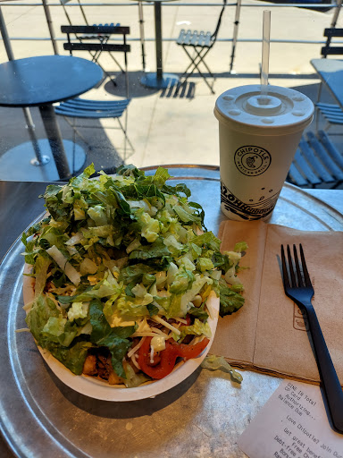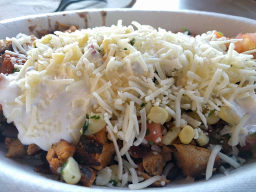Heat wave on Friday on July 22nd sent me to a chipotle after shopping at Target on Main Street. Ordering is easy with with choice of steak, barbacoa, sofritas tofu, carnitas in a bowl or burrito and options for toppings such as sweet corn salsa brown or white rice lettuce onion sour cream or cheese. Guacamole is extra. Vegan ok.