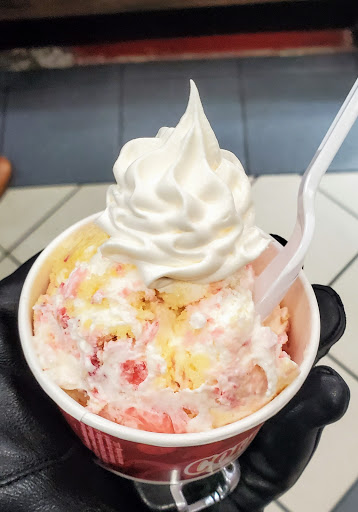 Neither of the workers wore gloves nor did I see them wash their hands between customers. One licked her finger after got ice cream on it then proceeded with making the ice cream. One would Operate the register then go back to grabbing waffle cones with her bare hands! The fridge that is in plain view of the customers has an open can of Arizona Ice Tea, someones to-go lunch bag too. The cashier was eating from some piece of food wrapped in a bag behind the counter while waiting for the chip cards to process. So unprofessional and definitely not CLEAN!!! Health inspection needs to be done here, guarantee theyd fail! Will never come back.