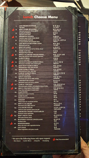 There were plenty of things that I liked about Gen, but far too many things that really bothered me. We originally made reservations for a party of ten, but after a couple made other plans, our party had dropped to eight (and eventually became seven when by the time we made it to the restaurant), and when we informed Gen of the change, they had to cancel our reservation, a rather unfortunate policy. So we go anyway as a walk-in and request a table for seven. We waited for about a half-an-hour, which wasnt too bad. Our party makes our way through the dining room, up the stairs to the smokey top floor. We start ordering and begin running into shortages, many of the side dishes, the salad, rice, and even glasses for our pitcher of beer (which once we did get, most were still dirty). The waiters were working hard, but the restaurant was showing its shortcomings. At the end of the meal, they bring us the check, with a mandatory gratuity already tacked on, although their menu states that a mandatory gratuity is only tacked on for parties of 8 or more. At every turn, this establishment made blunder after blunder. Had it been up to me, there would have been absolutely no tip left, but my group, being the caring people they are, decided to modify the tip to something they were comfortable with. I wont be back here, nor would I recommend it to anyone else.