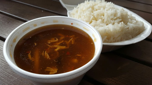 The portions are large but the hot sauce is sour. Staff is friendly and nice. The soup we were served was too sour and bitter for my taste but the chicken chow mein was good.
