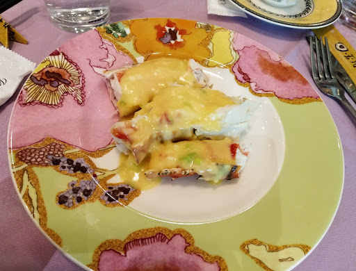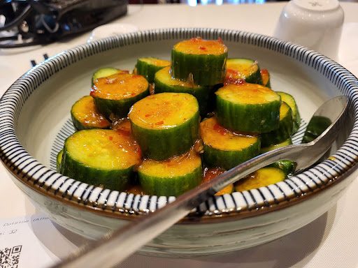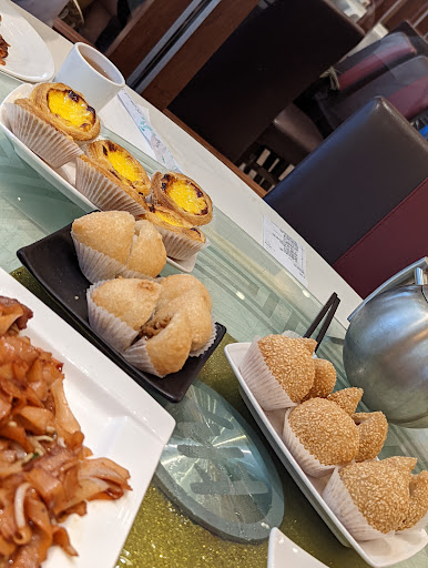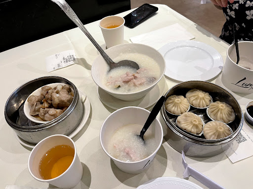 We ordered the following items: 1. Portuguese Egg Tarts (葡撻) - The first item brought to our table which indicated sequence and order of consumption is not of interest at this upscale restaurant. These tarts have to be eaten warm but they arrived lukewarm. The sugar level of the custard was just right. The crust is crispy and layered, it does not crumble over time. A solid choice. The plating was obviously copied from Tim Ho Wan, a Michelin-rated dim sum restaurant in Hong Kong. 2. Golden Egg Yolk Buns (金沙飽) - Lunasias egg yolk buns had the essential "lava effect" which means upon penetrating the buns skin, egg yolk filling bursts into your mouth like a flowing molten lava. The buns spongy and soft texture was another highlight. However, the yolk-coconut milk ratio in the filling was skewed towards the sweet side. 3. Choy Sum w/ Chinese Pickled Vegetables (冬菜鹽水浸菜芯) - A very ordinary Guangdong vegetable soaked in brine. The pickled toppings were nearly tasteless so they did not add additional flavor to the already bland vegetables. Skip this and cook it at home. 4. Shanghai-Style Five Spice Smoked Fish (五香煙熏魚) - Lunasia serves dim sum from the various areas of Guangdong province and also other parts of China. This is a Shanghai-style smoked fish with a crispy skin and a lot of tiny bones in between the meaty flesh. The sweet seasoning overpowered most of the taste of the five-spice marinade, but it was a light sweetness that I enjoyed when I took a break from savory food. 5. Spinach Dumpling with Fresh Shrimp (鮮蝦菠菜餃) - This is the most visually appealing item on the menu, a play with decoration and colors. There is fish roe sprinkled along the tip of the dumpling. However, the taste is just average. The description is misleading since there is actually no shrimp inside the dumpling. Shrimp was substituted with a chopped scallop and chewy Chinese green mixture. The dumpling skin was moist and firm to hold a large quantity of filling, but the filling was too salty and there was hardly any seafood flavor. 6. Handmade Beef Ball Congee (手打牛丸粥) - The beef balls in this congee are hand-constructed from scratch and they taste a lot lighter than the refrigerated versions found at supermarkets. It has some subtle orange peel flavor. Lunasias beef balls have a soft gelatinous texture that blends in with the smooth white congee. The congee base is very plain and not overdosed with salt which is common at even high end dim sum restaurants. 7. Macau Roast Pork Belly (澳門燒腩仔) - Lunasia sure knows how to present their dim sum artistically while cutting costs. Macau roast belly is well known for its crispy skin and pork fat layered between the meat. Its often cut into cubes, but Lunasia slices the pork belly into strips as thin as sashimi so the quantity appears to be large but it actually isnt. Although the pork belly meat was high quality and the crunchy skin was first-class, it wasnt worth the special price order for the quantity given. 8. Shunde-Style Chicken Wrap (順德大良雞卷) - Shunde is a region near Guangzhou where the dim sum is top notch. Lunasias product is not close to being a replica of what is found in China as each piece is too thin, especially the crust, but it has the same concept of chicken encased in fried bean curd. This "chicken wrap" was very greasy and salty, and although Lunasia paired it with a sweet dipping sauce, I think it would better be washed down with a beer. My opinion is that Lunasia ranks in the middle of the pack of dim sum restaurants in LA, trailing behind Sea Harbour, China Red, and King Hua. The quality and quantity of food do not match the prices charged, which is probably marked up to help pay for the extravagant decor.