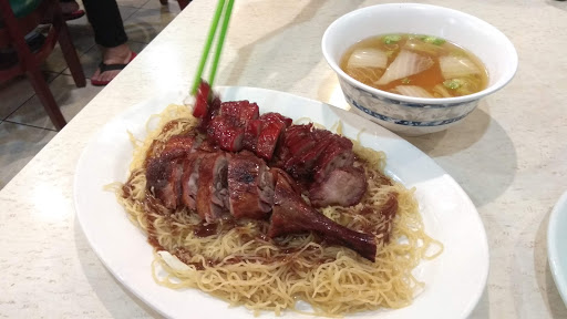 Im indifferent about this place. I grew up in Alhambra so Ive been eating here for years and I have to say, if you go here, you need to know what youre getting yourself into. Its an old asian staple in the SGV where theyre known for their duck, pork and asian dishes in general. Coming from someone who grew up in the area, I know you cant expect too much in terms of service. I love the food here but why a 3 star. Heres why. The food is good but at the same time is different in quality once in awhile. Its one of those family owned joints where the time you go matters. In terms of the service, its what really gives this place a lower rank and not a 4 from me. Theres been countless times that I go when theres no one there where the cooks or chefs, whatever you want to call them just sit there and talk and lag cutting my stuff. I get it, youre hanging out, you do long hours but my moms need to eat. Hustle up! haha Also, if you ever get the food on some holiday, consider this place a battle zone. They dont really follow line protocol and make their customers get in line. haha Its a free for all. Im a pretty big and tall guy but my asian aunts and uncles can care less as they push their way through. Overall, good chinese food as Ive been eating here for years. I go here because its cheap but sometimes the meat isnt consistant and lets be honest, this place is a "C" if that. I guess thats where the extra flavor comes form.