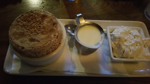 Had fish & chips (fries). I asked for the fries to be extra crispy. Got over cooked fish & soggy fries. They brew beer. I asked for 1 of their beers that was similar to Dos Equis. They could not figure that out. My daughter was with us who is vegan. Not much to order. Got a salad that normally comes with meat & cheese. No meat or cheese, same $15.00 bucks. Wife got a bowl of onion soap. It was very tastie, but they used way to much salt. Overal all, not a great experience. This was a late lunch, early dinner, so it was not real crowded for a Saturday.