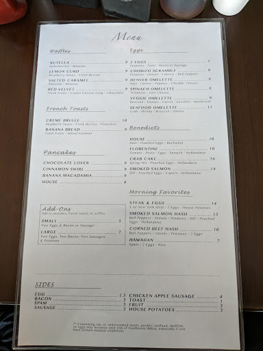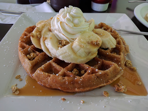 I only go to this place for one thing only and that is their waffles. I am not a fan of waffles and I seriously dislike those frozen ones too. All I can say is that this is the only place I will ever eat waffles. Red Velvet with blueberries drizzled with a creamy sauce topped with whipped cream. This is my favorite Lemon Curd Waffles Banana Caramel waffles. All are delicious and service here is nice and friendly and the locals love this place. Only open till 230 I believe but get there early and if you go on a weekend EXPECT to wait a long time. Thats how popular this place is.