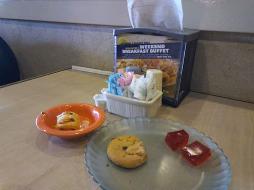 Nice buffet lunch. Salad bar, Mexican good bar, 2 other hot food bars. Theres nice hot dinners rolls and pizza available. Very appropriate place to come with your children. Thursday evenings they do specials for families with children. Check it out. Today I enjoyed meatloaf, fried chicken, mashed potatoes and brown gravy (gravy was too salty for my taste). I also had a little steamed carrots and a little corn. The desert area is separate from the other hot foods. I just walked back there when they were refreshing the deserts and took a slice of dark chocolate cake...yum. TIP: Sign up for their Crave loyalty and receive discounts on future visits. Today I used a $2.00 off coupon for my lunch. They also offer Senior discounts you can sign up for.
