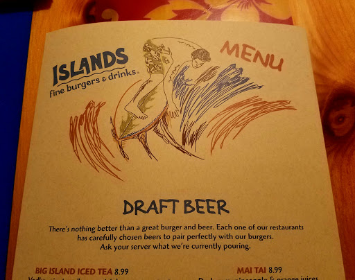 Islands usually has good burgers, but yesterday we went for lunch and the burgers were soggy with catsup & falling apart. Very unappetizing.The server was not as efficient and friendly as our past servers have been.