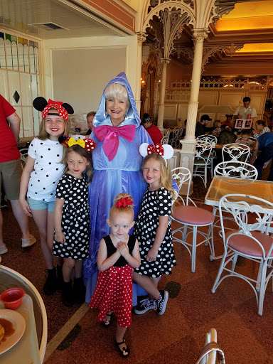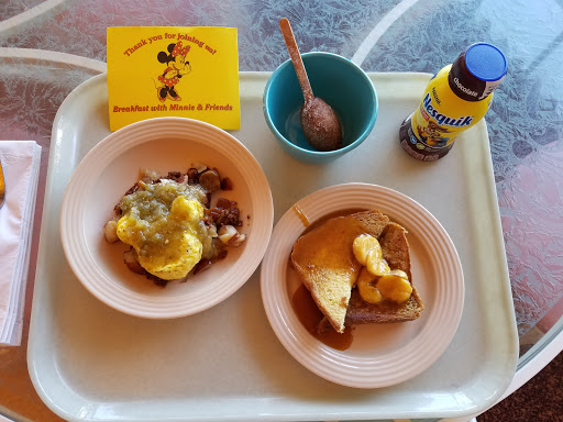 Minnie and Friends Character breakfast at the Plaza Inn provides an efficient way to meet a constant parade of ten to twelve characters. Our seating included Minnie, Captain Hook, Pooh Bear, Chip & Dale, Fairy Godmother and more. Buffet style dining offers breakfast basics including the popular mickey shaped waffles, however getting the kids to eat was a challenge with the constant distractions. There are cheaper ways to meet characters, but none that avoid extensive line ups. Worth it as a one time experience.