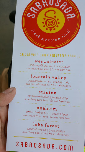 Whenever Im looking for a quick and filling meal, Ill always head to sabrosada for a hefty burrito! Theyve timely and friendly service has got me coming back everything Im looking for some great Mexican food. My go to is the Carnitas burrito with an Horchata!