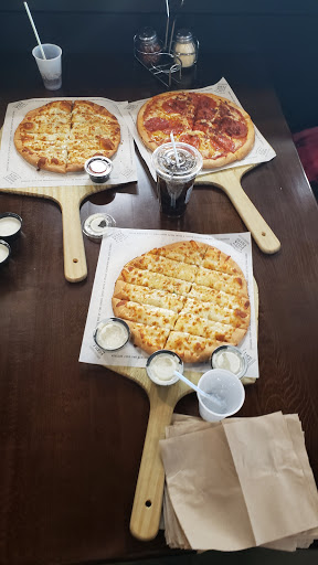 I didnt have high expectations as soon as I saw the conveyor oven. Thankfully, the size of the pizzas are good for the price, though the dough was rather generic. Choice of toppings is good, I love that they have the herbs at the end to garnish the pizzas with. Despite the selection size, the pepperoni was sliced too thinly for me so I could not taste it. As far as the service, there were quite a few customers ahead of us, but the wait was completely expected and not overly long. Customer service was good, and the guys working had good attitudes and were happy to assist. Overall, the food is good, though nothing special. If Im in the area again and wanting pizza, Ill definitely be considering this place again.