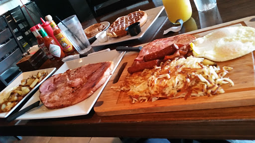 Hubby found this hidden gem in Anaheim of all places, but it was very good. The best time to come is 8, anytime after that and the wait is ridiculous. The servers were very nice and friendly, and the establishment is clean and spacious. The portion here is huge, I honestly think one meal served two. Is it strange to complain that they give toooo much food? Well, they do and you better come on an empty stomach or else you will be Togoing half of your food. The chicken and waffle was perfect! The steak fajitas was good, but the steak was a little too dry for my taste. Ill definitely be back to try other items on the menu and bring a long more friends to help devour the food.
