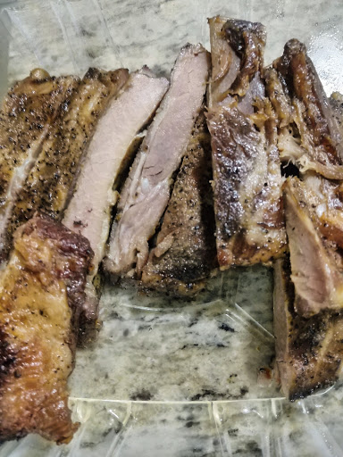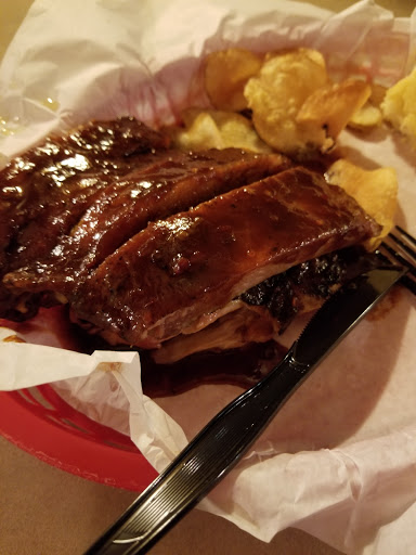 I got their chicken and ribs, which you would probably think would be great, considering thats the name of this place. The chicken was pink, completely undercooked, so I didnt eat it (I prefer not to get sick). The pork ribs were dry and chewy. The bbq sauce was water at the bottom of the box with a little bit of what kind of tasted like bbq sauce. Literally the WORST BBQ I have ever had. I also had the Mac n cheese with was mediocre and the potato salad which tasted like it was fresh... out of a can. I wish there was something I could say that would make this place worth trying but giving people undercooked chicken I think might be a health code violation. So if youre not a fan of salmonella, Id steer clear of this place.
