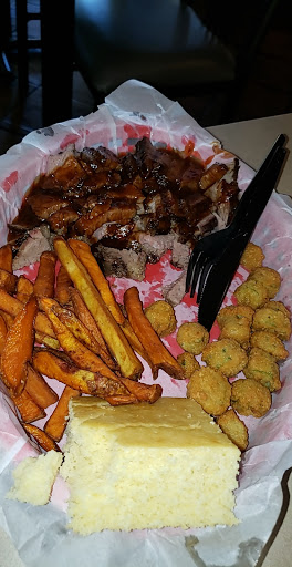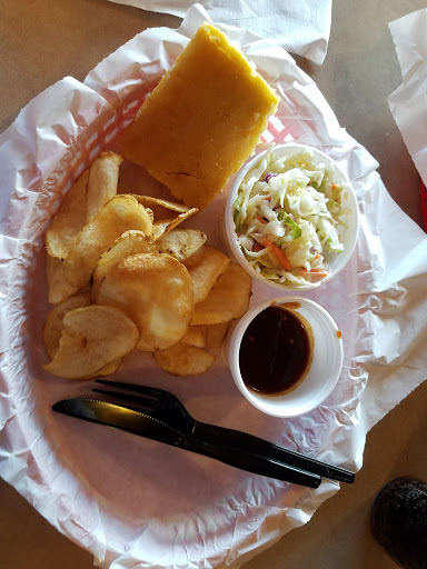 This place is great! I ordered the sampler, it included 4 orders of meat or seafood and four sides. I selected the tri tip, smoked links, ribs and oysters. For sides I got cole slaw, pasta salad, mac and cheese, and "flips" (home made potato chips) The portions were huge, the sides themselves would constitute a meal on their own. The spicy BBQ sauce was great but I believe the meat would have held its own without it. The rib meat just slid off the bone using a plastic fork (i believe they give you plastic to minimize damage incase someone gets too close to your meat platter and instinctively you try and defend your food) the tri tip was tender, perfect texture in every bite. The smoked links were sliced to maximize surface area to make them an effective sauce delivery device. All four sides were on point also. I believe I took more food home than I ate there, and Im not a little guy. I cant wait to digest so I can finish my left overs. Great prices for the quality and quantity, you will not go home hungry. Too many times at other places the portions were small, with part of it too tough or full of grizzle to eat all of it, simply not a problem here. Every single bite was perfect. Give them a try, if you like BBQ you owe it to yourself.