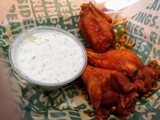 Ive ordered online from this location a few times. Ive never had to wait when I arrive. Nothing fancy here wings and fries. Clean restaurant.