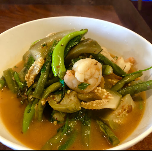 I love this place! The food is amazing always fresh and flavorful. Its a lil hole in the wall kinda place that you prob wuldnt even notice. You have to overlook the homeless people lurking around tho.Very calm and relaxed environment (Inside).Ive gone to other thai food resturants in nicer areas and they dont even touch this place