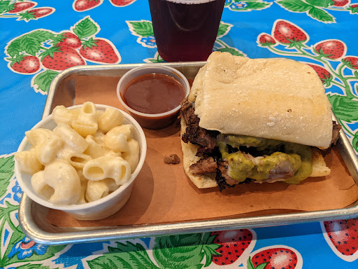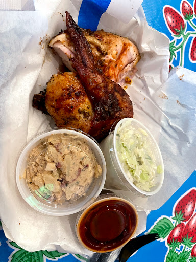 Very up and down experience for us on our visit. Definitely a good neighborhood BBQ restaurant. The tri-tip was exceptional and our sides of potato salad and beans were both good. The chicken was a bit dried out, but that was mitigated by their delicious BBQ sauce. We were there on a Friday night when there was live music. As a result, it was packed and loud, including lots of kids, and, as a result, difficult to carry-on any type of a conversation at our table. They also have this practice of walking around the room yelling out the name of the persons food order when it is ready, so there were lots of names being shouted during the time we were eating. You also have to know what you want to drink when you order your food at the counter or you have to step to a separate counter to look at the beverage menu and place your order separately. They have a small narrow outside patio out front near the quiet street. Good foot and lots of potential, but would love to tweak their operation a bit to address some of the negatives.