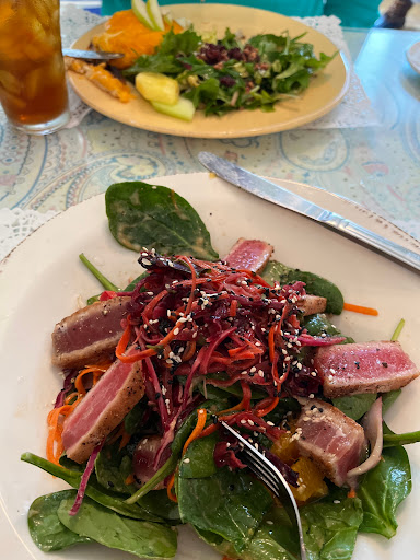 The food here was amazing! The decor was reminiscent of a grandmothers house, with pastels and lace - not my favorite - but the meal we had was extraordinary. I particularly liked the butternut squash soup as a starter. Everything on the menu sounded tasty.