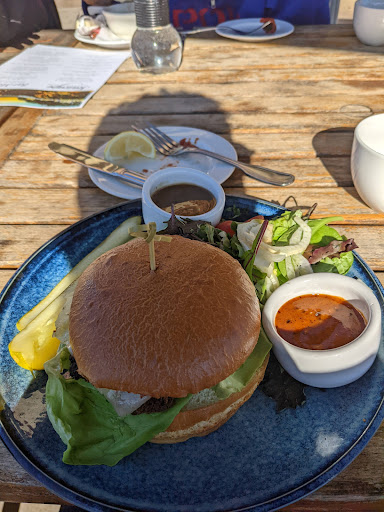 Service is very nice. Great scenery. However the food is poor. The fish in the fish and chips was over cooked and dry, the fries were cold. The Caesar salad was tasteless.