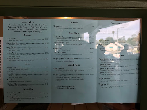 Charged me tax on fresh juice, which is illegal. When I aked the counter guy why he charged me tax on cold food (hot foods taxed because of the heat, which the state taxes) without carbonation(taxed again) he told me the tax was because of the juicer,which us total poppycock. Fresh juice is not taxed in California. Ill be reporting this business to the state. Food is o.k. Greasy mexican. Nearly uneducated counter staff make this place shoddy at best. Theres better at Manuels right around the corner.