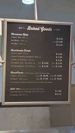 Good tasty treats and good service. A bit pricy compared to other Cinnabon locations.