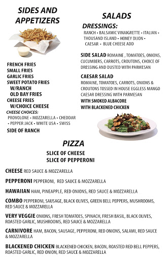Bomb food. Had the burger way better than stars. A bit on the pricey side depending on what you order but the food will full you up. They have pizzas, cold sandwiches, hot sandwiches, burgers (chicken, beef, veggie), fries and beer.
