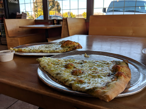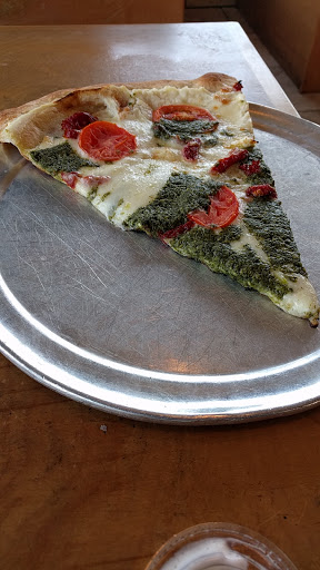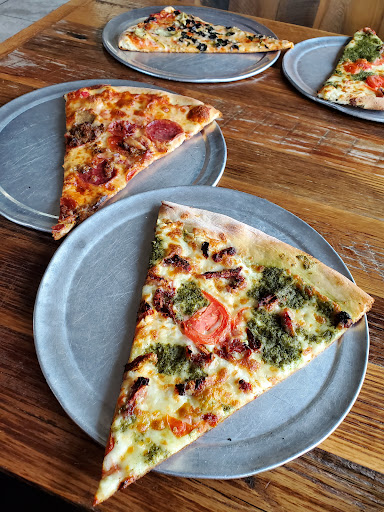 Stopped here on a motorcycle poker run so it was unusually busy with our large group. Staff was pleasant and accommodating, hustling to get the crowd and the locals served. Pizza is obviously New York style with giant slices, with some interesting topping choices. While we didnt order last, a mix up with our order meant we had to wait awhile for our food and subsequently our group left without us. The staff were upfront and apologetic and slipped us an extra slice before we even had a chance to complain. Pretty good pizza too!