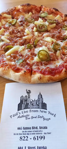 Pauls Live from New York is my favorite pizza in Humboldt County, hands down! They also serve raspberry Iambic from Six Rivers on tap here, which is so awesome.