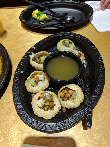 "Its an explosion of flavor in your mouth" -said my friend as she was giving me the lowdown of what she ordered for our group. And yes, it was nothing short of that. This was my first time having authentic Indian street food and it was so delicious. Where has this been all my life?? Everything I had was full of flavor and spice. So SO good. **this review is mainly for newbs to this food... heh We started with the Pani Puri. It consists of a round, hollow, fried pastry shell filled with chutney, chili, potato, onion and chickpeas. You fill the shell with a cilantro water to the brim and consume the bite sized snack in one bite. Wow, explosion of flavor, texture and spice. Warning: You must be able to handle spice!! I came with someone who couldnt hang; yay more for me :]] Just kidding, I shared. These are so delicious; we each had our own order of Pani Puri (6 per order) Masala dosa: Think a thin, slightly sweet crepe stuffed with potato in the middle. This comes with a soup (lentil like) and coconut cream sauce as sides. You can dip dosa in these sauces or just eat them by themselves. You can also order the dosa without the potato in the middle. The dosa was slightly sweet and nicely crisped on the outside. This was a nice balance to the heat and flavors from the other dishes. Delhi Chaat: Fried pastry shells mixed with potatoes, chickpeas, beans covered with a yogurt sauce and sweet/spicy sauces. Very delicious. Those shells stayed crispy to the very last bite. Bhel Puri: Rice puffs with potatoes, beans, onions, cilantro covered with a sweet and spicy sauce. Also very delicious. This was more refreshing and lighter than the delhi chaat. Wonderful blend of flavor and texture from the puffs, beans and oninons. Chole Bhature: Like Naan, but not oily. It comes with this chickpea stew/soup that you dip the bread in. The bread was soft and yummy. I liked this soup flavor better than the one that came with the dosa. All in all, everything I tried was full of flavor and tastiness. Not to mention, our dinner was less that $9 and we were stuffed. Now I just need to move closer