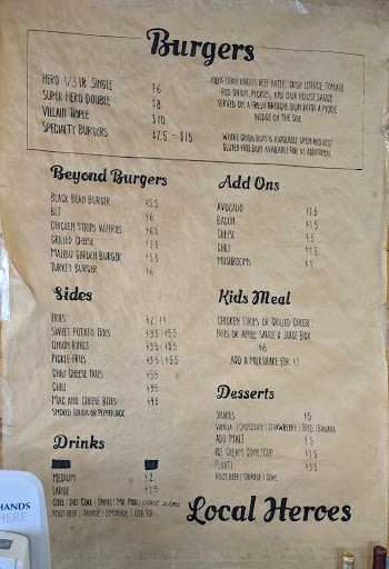 Local Heroes serves one of the best burgers for the price Ive ever had. I had the bacon double cheeseburger and it was delicious! Great fries too. Doesnt cost a fortune to feed a family.