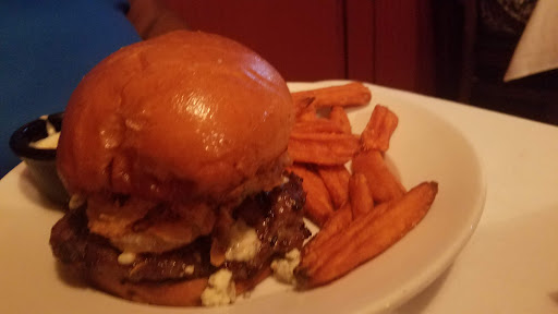 We were a bit sceptical when we first arrived, but decided to give the place a try. Happy that we did. The music was good and so was the food. We had the bison burger and the Italian chicken sandwich (I think thats what it was called?). Both were very good. The salad with parmesan vinaigrette was very tasty, too. Very pleasant waitress. The place is a bit loud, but still a nice experience. I didnt really notice once I got my drink (Malibu Mai Tai) and food. I would go again.