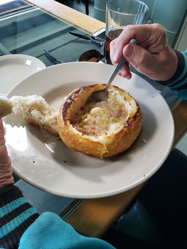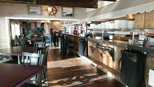 Walked in here on a rainy Sunday afternoon and said hello but recieved nothing in return. No greeting, servers and bartenders were looking down at their phones. Same when we left and said thank you...Absolutely nothing. The space is really interesting and dynamic on the pier with glass viewing windows to the water below and a great big window to the coastline and breakwater. Service was ok, but the food was nothing to write home about. Clam chowder was not good and came out looking like it came from a can, pretty flavorless. Definitely room for improvement.